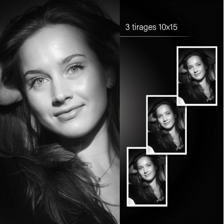 Ces 3 exemplaires identiques sont imprimés à partir de votre portrait préalablement réalisé dans une cabine Studio Harcourt connectée
